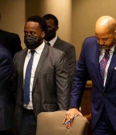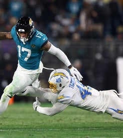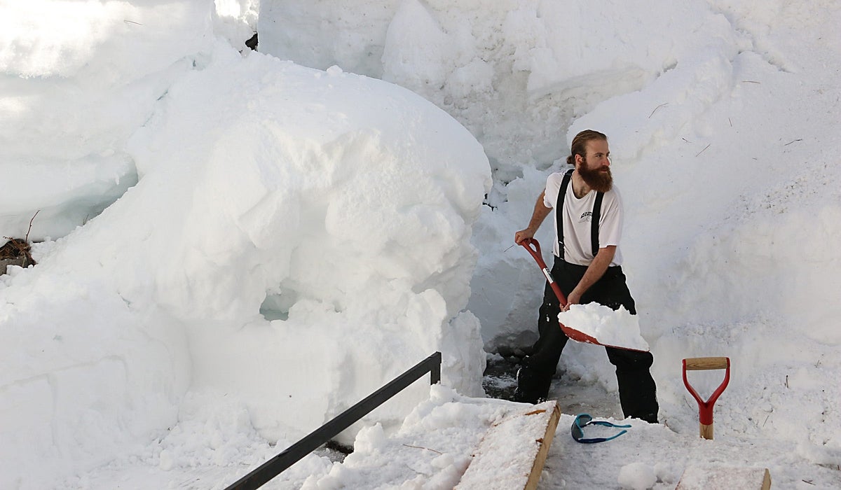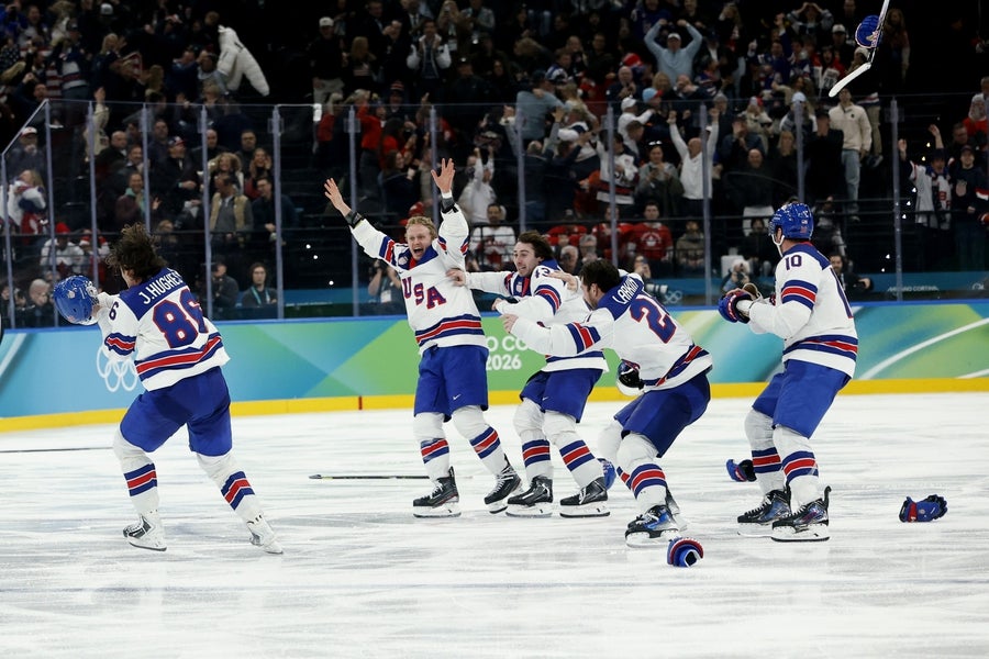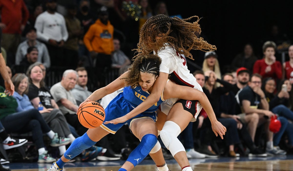 San Diego State Aztecs head coach Brian Dutcher falls back onto his players from a ladder after defeating the Wyoming Cowboys and earning the Mountain West Conference regular season championship at Viejas Arena