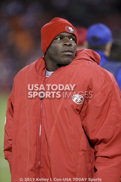 Aug 8, 2013; San Francisco, CA, USA; San Francisco 49ers running back Frank Gore (21) on the sideline during the fourth quarter against the Denver Broncos at Candlestick Park. The Denver Broncos defeated the San Francisco 49ers 10-6. Mandatory Credit: Kelley L Cox-Imagn Images
